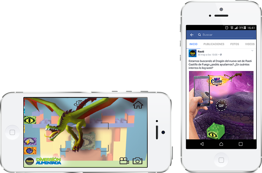 Apuntando la camara de tu dispositivo a los NIR, podrás ver los personajes interactuando entre ellos y con la construcción.
